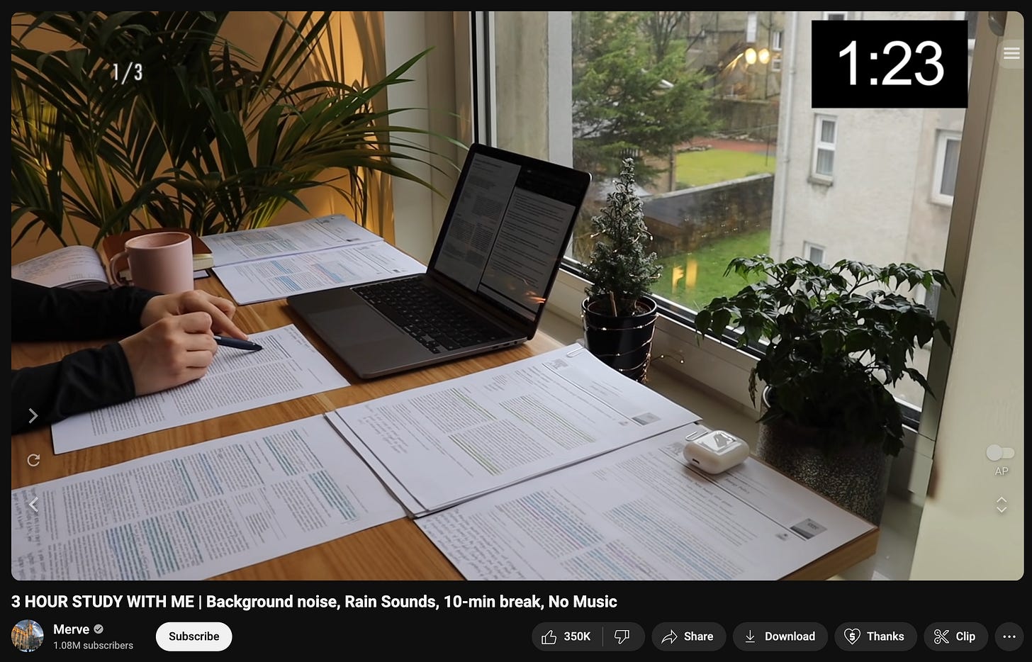 또 누군가에게는 얻을 것이 없다고 생각되는 3시간 동안 공부하는 영상도 소비된다.